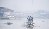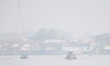 REPUBLIKA.CO.ID,Sejumlah pelajar berangkat sekolah menggunakan perahu tradisional melewati kawasan yang diselimuti kabut asap di Sungai Ogan, Palembang, Sumatera Selatan, Rabu (6/9/2023).