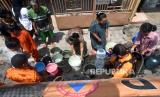 REPUBLIKA.CO.ID,BOGOR -- Petugas BPBD Kabupaten Bogor mendistribusikan air bersih untuk warga di Kampung Cemplang, Desa Sukamaju, Cibungbulang, Kabupaten Bogor, Jawa Barat, Rabu (6/9/2023).