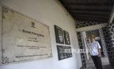 Kepala Dinas Ketahanan Pangan dan Pertanian (DKPP) Kota Bandung Gin Gin Ginanjar melihat prasasti gedung cagar budaya Rumah Potong Hewan (RPH) Ciroyom DKPP Kota Bandung, Jalan Arjuna, Kota Bandung, Jawa Barat, Rabu (6/9/2023). Pos jaga dan sebagian bangunan bagian depan yang menjadi ikon cagar budaya kelas A yang telah ada dari tahun 1935 tersebut terancam terkena imbas dari proyek pembangunan Fly Over Ciroyom. Proyek Fly Over tersebut bertujuan untuk memudahkan operasional feeder Kereta Cepat Jakarta - Bandung yang akan beroperasi dalam waktu dekat. (FOTO : ABDAN SYAKURA/REPUBLIKA)