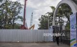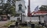 Pekerja menggunakan alat berat menyelesaikan proyek Jalan Layang (Fly Over) Ciroyom di depan Rumah Potong Hewan (RPH) Ciroyom DKPP Kota Bandung, Jalan Arjuna, Kota Bandung, Jawa Barat, Rabu (6/9/2023). Pos jaga dan sebagian bangunan bagian depan yang menjadi ikon cagar budaya kelas A yang telah ada dari tahun 1935 tersebut terancam terkena imbas dari proyek pembangunan Fly Over Ciroyom. Proyek Fly Over tersebut bertujuan untuk memudahkan operasional feeder Kereta Cepat Jakarta - Bandung yang akan beroperasi dalam waktu dekat. (FOTO : ABDAN SYAKURA/REPUBLIKA)