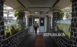 Petugas keamanan beraktivitas di bagian depan gedung cagar budaya Rumah Potong Hewan (RPH) Ciroyom DKPP Kota Bandung, Jalan Arjuna, Kota Bandung, Jawa Barat, Rabu (6/9/2023). Pos jaga dan sebagian bangunan bagian depan yang menjadi ikon cagar budaya kelas A yang telah ada dari tahun 1935 tersebut terancam terkena imbas dari proyek pembangunan Fly Over Ciroyom. Proyek Fly Over tersebut bertujuan untuk memudahkan operasional feeder Kereta Cepat Jakarta - Bandung yang akan beroperasi dalam waktu dekat. (FOTO : ABDAN SYAKURA/REPUBLIKA)