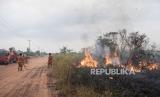 REPUBLIKA.CO.ID, OGAN ILIR -- Petugas dari Manggala Agni Daops Banyuasin dan Polri berusaha memadamkan kebakaran lahan yang terjadi di Desa Sungai Rambutan, Indralaya Utara, Ogan Ilir (OI), Sumatra Selatan, Rabu (6/9/2023).