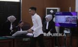 Terdakwa kasus penganiayaan terhadap David Ozora, Mario Dandy Satriyo saat menjalani sidang vonis di Pengadilan Negeri Jakarta Selatan, Jakarta, Kamis (7/9/2023). Majelis hakim memvonis Mario dengan pidana penjara 12 tahun serta kewajiban membayar restitusi terhadap David sebesar Rp 25,1 miliar. (FOTO : Republika/Putra M. Akbar)