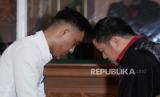 Terdakwa kasus penganiayaan terhadap David Ozora, Mario Dandy Satriyo berbincang dengan kuasa hukumnya disela sidang vonis di Pengadilan Negeri Jakarta Selatan, Jakarta, Kamis (7/9/2023). Majelis hakim memvonis Mario dengan pidana penjara 12 tahun serta kewajiban membayar restitusi terhadap David sebesar Rp 25,1 miliar. (FOTO : Republika/Putra M. Akbar)