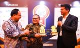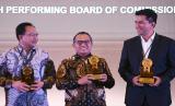 Direktur Human Capital, Compliance & Legal Bank BTN Eko Waluyo bersama Corporate Secretary Bank BTN Ramon Armando (kiri) dan Kepala Divisi Compliance & Governance Division Wahju B Witjaksono (kanan) usai menerima penghargaan Top GRC Award 2023 di Jakarta, Rabu (6/9/2023). (FOTO : Dok. Republika)