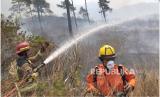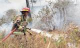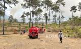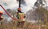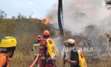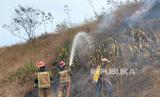 REPUBLIKA.CO.ID, Petugas melakukan pemadaman api yang membakar lahan di Gunung Guntur, Kabupaten Garut, Jawa Barat, Kamis (7/9/2023). Api membara dan melalap lahan kering seluas 3 hektare yang terjadi sekitar jam 10.50 WIB.