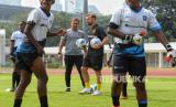 Siswa dari Papua Football Academy (PFA) saat coaching clinic bersama tiga legenda Borussia Dortmund di Stadion Madya, Senayan, Jakarta, Jumat (8/9/2023). BVB Legends Tour Indonesia bersama PSSI menggelar coaching clinic dengan mendatangkan tiga legenda Borussia Dortmund yakni Paul Lambert, Joerg Heinrich dan Marcel Schmelzer untuk memberikan pelatihan sepakbola kepada siswa Papua Football Academy. (FOTO : Republika/Thoudy Badai)