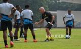 Legenda Borussia Dortmund Paul Lambert memberikan bimbingan kepada siswa dari Papua Football Academy (PFA) saat coaching clinic di Stadion Madya, Senayan, Jakarta, Jumat (8/9/2023). BVB Legends Tour Indonesia bersama PSSI menggelar coaching clinic dengan mendatangkan tiga legenda Borussia Dortmund yakni Paul Lambert, Joerg Heinrich dan Marcel Schmelzer untuk memberikan pelatihan sepakbola kepada siswa Papua Football Academy. (FOTO : Republika/Thoudy Badai)