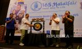 Founder ESQ Group Ary Ginanjar Agustian (kedua kiri) memukul gong disaksikan Komisaris Utama PT Grha 165 Tbk Aries Muftie (kiri), Ketua Dewan Penasihat FKA ESQ Ade Supandi (kedua kanan) dan Sekjen FKA ESQ I Made Dana M Tangkas (kanan) saat pembukaan kegiatan Halal Fair di Menara 165, TB Simatupang, Jakarta, Jumat (8/9/2023). Kegiatan halal fair tersebut diselenggarakan oleh PT Grha 165 untuk pertama kalinya dengan mengangkat tema Halal Way To Life yang berlangsung hingga Ahad 10 September 2023 mendatang. Halal fair menyajikan beragam kegiatan seperti talk show dengan tema seputar halal, serta menyuguhkan sebanyak 115 stan UMKM dari beragam produk halal mulai dari makanan, fashion, jasa layanan travel, pariwisata, layanan keuangan hingga produk kecantikan. (FOTO : Republika/Thoudy Badai)