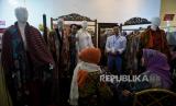 Pengunjung mengamati produk busana di pameran Halal Fair di Menara 165, TB Simatupang, Jakarta, Jumat (8/9/2023). Kegiatan halal fair tersebut diselenggarakan oleh PT Grha 165 untuk pertama kalinya dengan mengangkat tema Halal Way To Life yang berlangsung hingga Ahad 10 September 2023 mendatang. Halal fair menyajikan beragam kegiatan seperti talk show dengan tema seputar halal, serta menyuguhkan sebanyak 115 stan UMKM dari beragam produk halal mulai dari makanan, fashion, jasa layanan travel, pariwisata, layanan keuangan hingga produk kecantikan. (FOTO : Republika/Thoudy Badai)