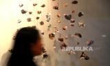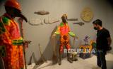 Pengunjung melihat karya saat Pameran TPS(T) di Ruangdalam Art House, Yogyakarta, Jumat (8/9/2023). Pameran dengan tajuk TPS(T) ini mengajak pengunjung untuk merenungi peristiwa-peristiwa yang terjadi di Yogyakarta. Terutama peristiwa tentang masalah pengelolaan sampah yang menjadi malapetaka saat ini. Sebanyak 50 karya dari 25 seniman mencoba untuk berdialog terkait peristiwa yang terjadi di depan mata akhir-akhir ini. Beberapa karya yang ditampilkan menggunakan bahan-bahan daur ulang sampah rumah tangga. (FOTO : Republika/Wihdan Hidayat)