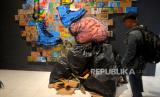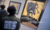 REPUBLIKA.CO.ID, YOGYAKARTA -- Pengunjung melihat karya seni saat Pameran TPS(T) di Ruangdalam Art House, Yogyakarta, Jumat (8/9/2023).