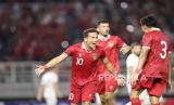Penyerang Timnas Indonesia Eggy Maulana Fikri melakukan selebrasi seusai mencetak gol ke gawang Turkmenistan dalam laga kualifikasi Piala Asia U23 2024 di Stadion Gelora Bung Tomo, Surabaya, Jumat (8/9/2023)malam. (FOTO : Dok.PSSI)