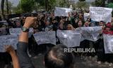 REPUBLIKA.CO.ID, YOGYAKARTA -- Pedagang kaki lima (PKL) di Teras Malioboro 2 (TM2) melakukan aksi damai di kantor DPRD Kota Yogyakarta, Timoho, Yogyakarta, Jumat (8/9/2023).
