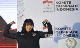 Atlet Renang Angel Gabriella Yus berpose saat peluncuran seragam Ofisial Tim Indonesia untuk Asian Games 2022 di Kantor Komite Olimpiade Indonesia (KOI) di Jakarta, Sabtu (9/9/2023). Indonesia akan mengirimkan sebanyakl 415 atlet dari 31 cabang olahraga Asian Games 2022 yang menargetkan minimal menempati 12 besar dengan perolehan 12 medali emas. (FOTO : ANTARA FOTO/M Risyal Hidayat)