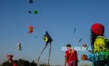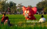 REPUBLIKA.CO.ID, SLEMAN -- Peserta menerbangkan layang-layang saat Ngaran Kite Festival 2023 bertajuk Akar Tumbuh, Budaya Tangguh di areal persawahan kampung Ngaran, Margokaton, Seyegan, Sleman, Yogyakarta, Sabtu (9/9/2023).