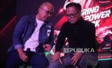 Direktur Utama PT Pengembangan Pariwisata Indonesia/Indonesia Tourism Development Corporation (ITDC) Ari Respati (kiri) bersama Direktur Utama InJourney Dony Oskaria berbincang disela diskusi bertema Kebangkitan Sport Tourism Menuju Pentas Dunia! di Jakarta, Ahad (10/9/2023). Dalam kesempatan tersebut ITDC menyampaikan komitmennya dalam mengelola Kawasan Ekonomi Khusus Mandalika sebagai destinasi sport tourism melalui berbagai program, insentif, hingga investasi pengembangan infrastruktur kawasan dan olahraga guna meningkatkan kapasitas sebagai tuan rumah acara-acara olahraga internasional lainnya. (FOTO : Republika/Putra M. Akbar)