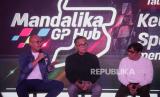 Direktur Utama PT Pengembangan Pariwisata Indonesia/Indonesia Tourism Development Corporation (ITDC) Ari Respati bersama Direktur Utama InJourney Dony Oskaria, Ketua The Prediksi Andre Taulany (dari kiri ke kanan) menyampaikan paparan pada diskusi bertema Kebangkitan Sport Tourism Menuju Pentas Dunia! di Jakarta, Ahad (10/9/2023). Dalam kesempatan tersebut ITDC menyampaikan komitmennya dalam mengelola Kawasan Ekonomi Khusus Mandalika sebagai destinasi sport tourism melalui berbagai program, insentif, hingga investasi pengembangan infrastruktur kawasan dan olahraga guna meningkatkan kapasitas sebagai tuan rumah acara-acara olahraga internasional lainnya. (FOTO : Republika/Putra M. Akbar)