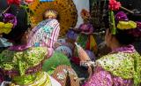 REPUBLIKA.CO.ID,SOLO -- Penari menunjukkan payung lukis Juwiring saat workshop pembuatan payung pada acara Festival Payung Indonesia 2023 di Balai Kota Solo, Jawa Tengah, Ahad (10/9/2023).