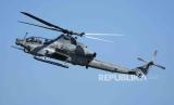 Helikopter milik Marinir AS bermanuver saat Latihan Gabungan Bersama (Latgabma) di Pusat Latihan Pertempuran Marinir (Puslatpurmar) 5 Baluran, Karangtekok, Situbondo, Jawa Timur, Senin (11/9/2023). (FOTO : AP Photo/Tatan Syuflana)