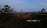 Suasana hutan dan lahan gambut yang telah habis terbakar di Desa Limbung, Kecamatan Sungai Raya, Kabupaten Kubu Raya, Kalimantan Barat, Senin (11/9/2023). Berdasarkan data BMKG pada 10 September 2023, dari hasil deteksi titik panas dengan menggunakan sensor VIIRS dan MODIS pada satelit polar (NOAA20, S-NPP, TERRA dan AQUA) yang memberikan gambaran lokasi wilayah yang mengalami kebakaran hutan dan lahan, terdapat 554 titik panas di Kalimantan Barat. (FOTO : Antara/Jessica Wuysang)