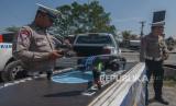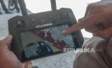 REPUBLIKA.CO.ID, SALATIGA -- Anggota Ditlantas Polda Jawa Tengah menunjukkan pelanggar lalu lintas yang terekam pada alat kontrol drone saat Operasi Zebra Candi di Salatiga, Jawa Tengah, Selasa (12/9/2023).