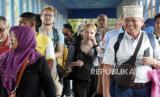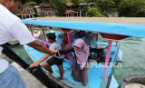 Wisatawan turun dari kapal feri air di Pulau Weh, Sabang, Aceh, Selasa, (12/9/2023). (FOTO : EPA-EFE/HOTLI SIMANJUNTAK)
