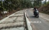 REPUBLIKA.CO.ID,LEBAK -- Pengendara roda dua melintas di jalan yang sedang di perbaiki di Leuwidamar, Lebak, Banten, Selasa (12/9/2023).