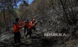 Petugas memadamkan sisa kebakaran hutan dan lahan (Karhutla) kawasan Gunung Bromo, Malang, Jawa Timur, Selasa (12/9/2023). Penyisisran yang dilakukan tim gabungan BPBD, BB TNBTS, TNI, Polri, relawan, dan masyarakat setempat tersebut untuk mengendalikan sisa kebakaran agar tidak meluas. (FOTO : Antara/Muhammad Mada)