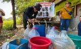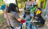 Warga mengambil air bersih dari losbak yang disediakan Pemerintah Desa Ciampea, Kabupaten Bogor, Jawa Barat. (FOTO : Republika.co.id/Shabrina Zakaria)