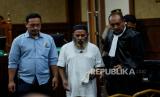 Terdakwa Lukas Enembe (tengah) menjalani sidang tuntutan di Pengadilan Negeri Tipikor, Jakarta, Rabu (13/9/2023). Jaksa penuntut umum (JPU) KPK menuntut mantan Gubernur Papua itu dengan hukuman 10 tahun dan enam bulan penjara, denda Rp1 miliar subsider enam bulan kurungan dalam kasus suap dan gratifikasi senilai Rp46,8 miliar dalam proyek pembangunan infrastruktur di Provinsi Papua. Selain itu jaksa penuntut umum menjatuhkan pidana tambahan pada terdakwa untuk membayar uang pengganti Rp47,8 miliar. (FOTO : Republika/Thoudy Badai)