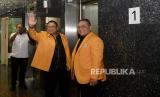Ketua Umum Partai Perindo Hary Tanoesoedibjo menyapa wartawan saat tiba untuk melakukan pertemuan di Gedung High End, Jakarta, Rabu (13/9/2023). Empat ketua umum partai politik pengusung bakal calon presiden (capres) Ganjar Pranowo menggelar rapat perdana yang membahas antara lain pemantapan Tim Pemenangan Nasional (TPN) dan agenda-agenda strategis lainnya (FOTO : Republika/Prayogi)