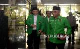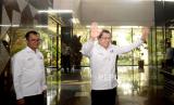 Plt Ketua Umum PPP Mardiono menyapa wartawan saat tiba untuk melakukan pertemuan di Gedung High End, Jakarta, Rabu (13/9/2023). Empat ketua umum partai politik pengusung bakal calon presiden (capres) Ganjar Pranowo menggelar rapat perdana yang membahas antara lain pemantapan Tim Pemenangan Nasional (TPN) dan agenda-agenda strategis lainnya (FOTO : Republika/Prayogi)