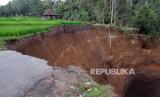 REPUBLIKA.CO.ID,GIANYAR -- Warga mengamati kondisi jalan yang amblas di lingkungan Cebok, Desa Kedisan, Tegallalang, Gianyar, Bali, Rabu (13/9/2023).