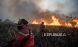 REPUBLIKA.CO.ID,OGAN ILIR -- Api membakar lahan di Desa Sungai Rambutan, Indralaya Utara, Ogan Ilir (OI), Sumatra Selatan, Rabu (13/9/2023).