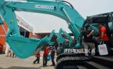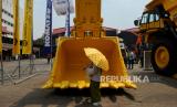Pengunjung mengamati alat berat yang dipamerkan dalam pameran Indonesia Energy and Engineering (IEE) 2023 di JIExpo Kemayoran, Jakarta, Kamis (14/9/2023). PameranIEE 2023 tersebut menggabungkan delapan pameran berskala internasional penyokong berbagai sektor penting penggerak nasional, seperti sektor kelistrikan dan energi, sektor tambang, sektor migas, sektor konstruksi dan pembangunan infrastruktur, sektor pengecoran logam, maupun sektor pengairan dan pengolahan limbah yang berlangsung hingga 16 September 2023 mendatang. (FOTO : Republika/Thoudy Badai)