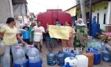 Lebih dari dua bulan ini warga di kampung ini mengalami kekeringan. Buntutnya, warga kesulitan memeroleh air bersih untuk kebutuhan sehari-hari. Warga hanya bisa menanti bantuan pemberian air bersih, baik dari pemerintah, swasta, hingga sumbangan dari perorangan maupun organisasi. Jika bantuan datang, mereka pun mau tak mau harus rela antre bergiliran mendapatkan air bersih.