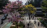 Bunga pohon Tabebuya asal Brazil itu bermekaran dan menambah keindahan kota.