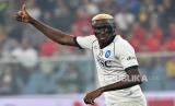 Aksi pemain Napoli Victor Osimhen saat pertandingan antara Napoli melawan Genoa pada pekan keempat kompetisi Serie A Liga Italia di Stadion Luigi Ferraris, Ahad (17/9/2023) dini hari WIB. (FOTO : EPA-EFE/LUCA ZENNARO)
