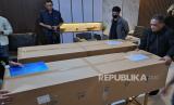REPUBLIKA.CO.ID,TANGERANG -- Petugas bersiap memasukkan jenazah Jainal Fanani asal Trenggalek ke dalam mobil ambulans setibanya dari Taiwan di Human Remains Terminal kargo Bandara Soekarno-Hatta, Tangerang, Banten, Ahad (17/9/2023).