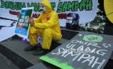 Seniman Pantomim Wanggi Hoed tampil pada aksi Global Climate Strike 2023, di Taman Cikapayang, Jalan Ir H Djuanda, Kota Bandung, Ahad (17/9/2023). Aksi tersebut sebagai upaya mengajak masyarakat untuk perduli terhadap perubahan iklim dunia, agar melakukan tindakan nyata dalam mengatasinya. (FOTO : Edi Yusuf/Republika)