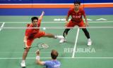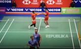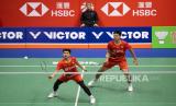 REPUBLIKA.CO.ID, HONG KONG -- Pebulutangkis Daniel Marthin an Leo Rally Carnando dari Indonesia melawan Kim Astrup dan Anders Skaarup Rasmussen dari Denmark beraksi pada laga final ganda putra di VICTOR Hong Kong Open 2023 di Hong Kong, Cina, Ahad (17/9/2023).
