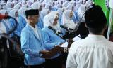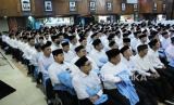 REPUBLIKA.CO.ID,BANDUNG -- Mahsiswa baru Universitas Islam Bandung (Unisba) mengikuti Pelantikan dan Taaruf Mahasiswa Baru Tahun Akademik 2023/2024 di Aula Unisba, Jalan Tamansari, Kota Bandung, Senin (18/9/2023).