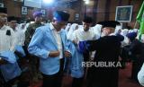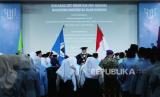 Rektor Universitas Islam Bandung (Unisba), Prof Edi Setiadi melantik lebih dari 2.000 mahasiswa baru Unisba saat Pelantikan dan Taaruf Mahasiswa Baru Unisba Tahun Akademik 2023/2024, di Aula Unisba, Jalan Tamansari, Kota Bandung, Senin (18/9). Pada kesempatan itu rektor berpesan, tujuan dari sebuah perjalanan akademik bukan sebatas diperolehnya gelar akademik saja, namun yang tidak kalah pentingnya adalah dicapainya kompetensi akademik yang mencakup aspek pengetahuan kognitif, keterampilan, sikap serta karakter dan kepribadian berakhlakul karimah. (FOTO : Edi Yusuf/Republika)