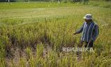 REPUBLIKA.CO.ID,TEMANGGUNG -- Petani menunjukkan tanaman padi yang diserang hama tikus di persawahan Desa Jambon, Kandangan, Temanggung, Jawa Tengah, Senin (18/9/2023).