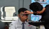 REPUBLIKA.CO.ID,BOGOR -- Siswa SMA mengikuti pemeriksaan kesehatan mata di SMAN 5, Kota Bogor, Jawa Barat, Senin (18/9/2023).