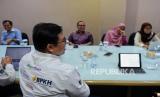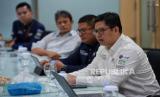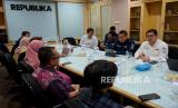 Direktur Utama PT Bank Muamalat Indonesia Tbk, Indra Falatehan (kanan) bersama jajaran direksi lainnya saat berkunjung ke kantor Republika, Jakarta, Senin(18/9/2023). Kunjungan tersebut merupakan agenda silaturahmi antara jajaran direksi Bank Muamalat bersama Redaksi Republika sekaligus membahas tentang program dan target Bank Muamalat. (FOTO : Republika/Thoudy Badai)
