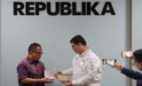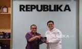 REPUBLIKA.CO.ID,  JAKARTA. --  Wakil Pemimpin Redaksi Republika Nur Hasan Murtiaji (kiri) menerima cendera mata dari Direktur Utama PT Bank Muamalat Indonesia Tbk Indra Falatehan (kanan) saat berkunjung ke kantor Republika, Jakarta, Senin (18/9/2023).