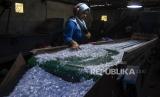 Seorang pekerja memilah plastik cacah di Koperasi Pemulung Berdaya, Setu, Tangerang Selatan, Banten, Senin (18/9/2023). Koperasi yang mempekerjakan sekitar 50 pemulung tersebut menghasilkan produk plastik cacah dan plastik pres sebagai bahan pelet plastik daur ulang dengan omzet mencapai Rp1,5 miliar per bulan. (FOTO : ANTARA FOTO/Sulthony Hasanuddin)