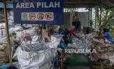 Sejumlah pekerja memilah sampah botol dan galon plastik untuk didaur ulang di Koperasi Pemulung Berdaya, Setu, Tangerang Selatan, Banten, Senin (18/9/2023). Koperasi yang mempekerjakan sekitar 50 pemulung tersebut menghasilkan produk plastik cacah dan plastik pres sebagai bahan pelet plastik daur ulang dengan omzet mencapai Rp1,5 miliar per bulan. (FOTO : ANTARA FOTO/Sulthony Hasanuddin)